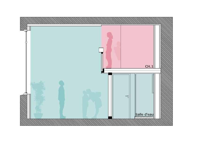 Ce projet est situé dans un ancien immeuble de bureau des années 30, divisé en  lot pouvant être réhabilité en locaux professionnels ou d’habitation. Cette possible double utilisation à conditionné notre proposition en aménageant un espace flexible pouvant servir d’habitation et de bureaux.